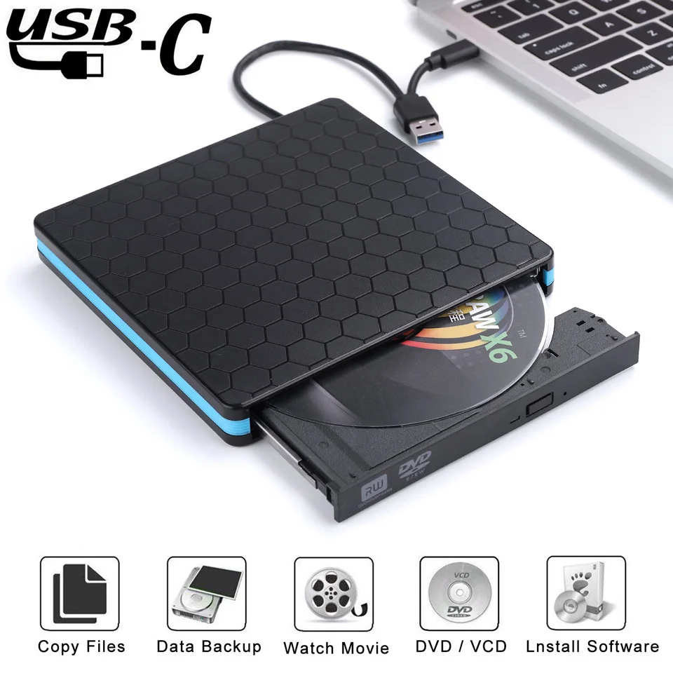 Best Universal Type C USB 3.0 External DVD/CD/ VCD Burner RW SVCD Drive Player Optical Drive for Mac/PC/