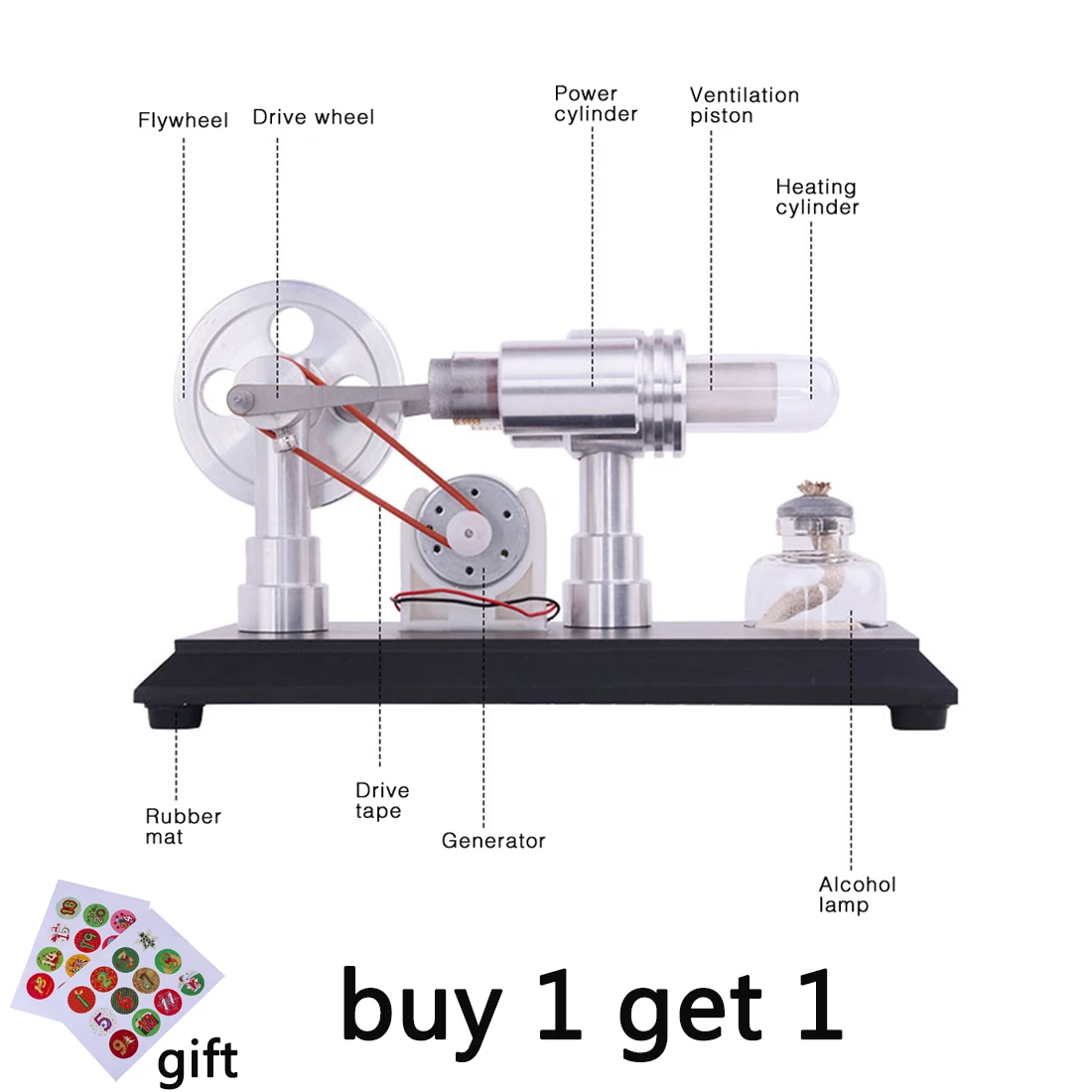 Review Double-cylinder Micro DIY Stirling Engine External Combustion Engine School Demonstration Early Lea